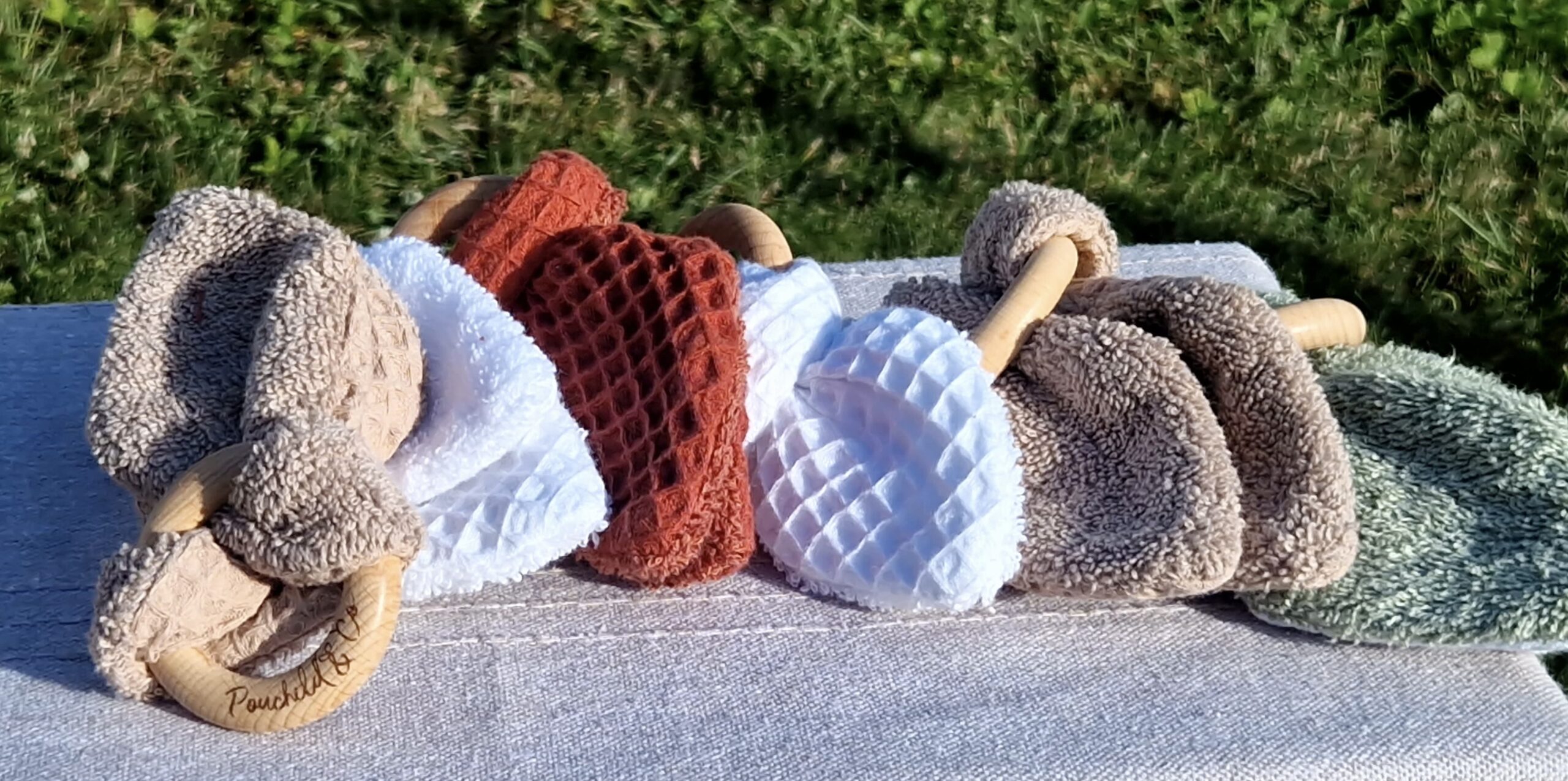 Un jolie anneau de dentition pour quand bébé fait ses dents!En Forme d’oreilles de lapinUn anneau de dentition verso en tissu design et recto avec l’éponge de coton